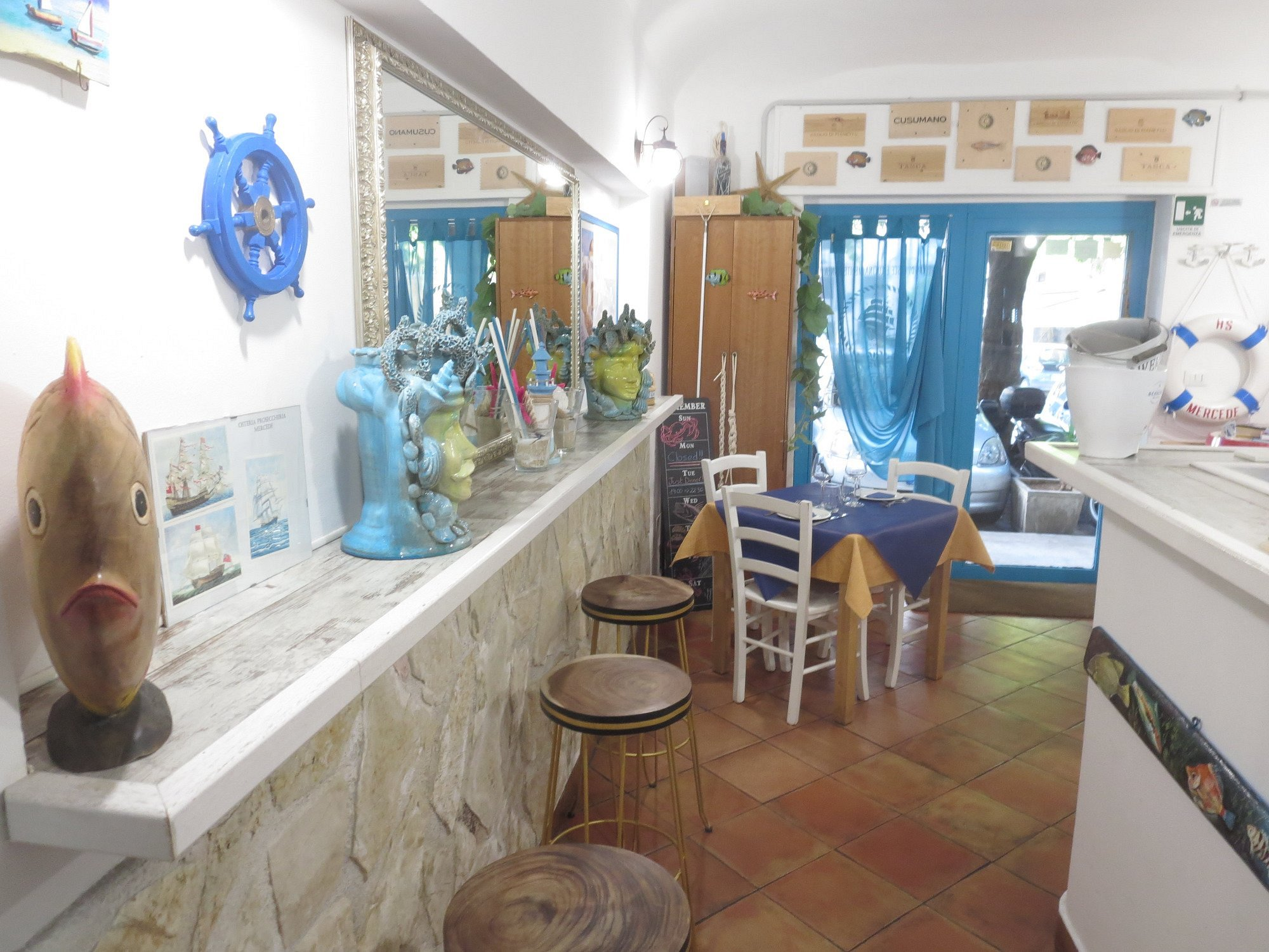 Nel cuore di Palermo, in Via Sammartino, Osteria Mercede porta i sapori autentici della Sicilia sulla tua tavola. Le nostre pareti bianche e blu richiamano i colori del mare Mediterraneo, creando un'atmosfera calda e accogliente.